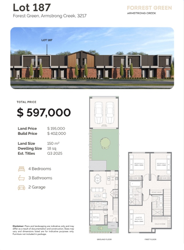 Forrest Green is situated 1 hour from Melbourne along the Surf Coast Highway, with ideal proximity to both the vibrant Geelong City Centre and the stunning Torquay Beach. Offering easy access to quality schools, childcare centers, shopping centers, parks, several medical centres and transport links such as V/Line train services that connect Melbourne and Geelong.